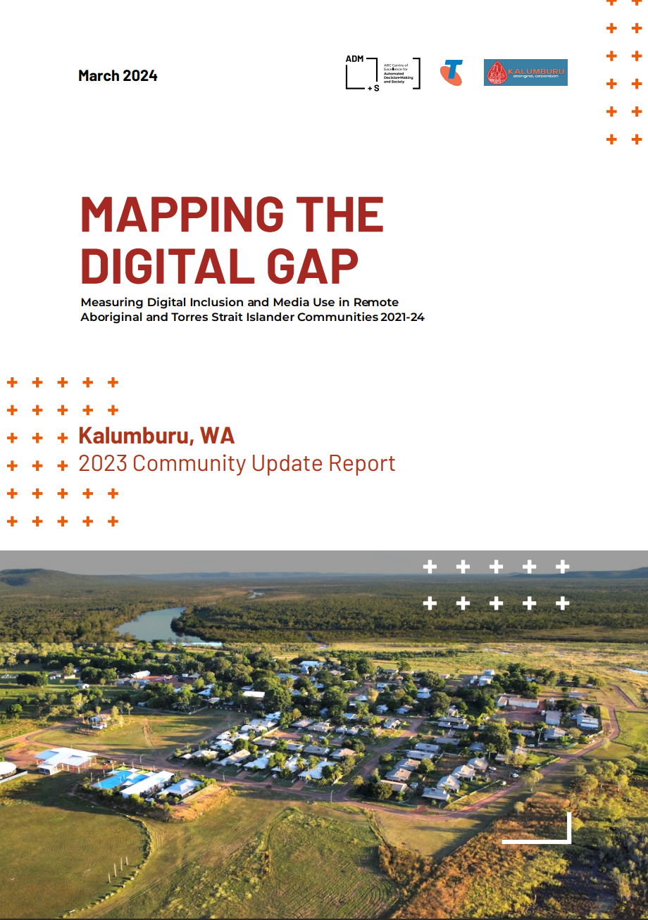 This report outlines the initial findings from a 2022 visit, and highlights the current access to and use of media, telecommunications and online services, as well as the digital inclusion and service delivery challenges in Kalumburu. This report is intended to assist local and regional agencies, including KAC, Kimberley Land Council, Wyndham-East Kimberley Shire, and the WA Government, to better understand the key barriers to digital inclusion in Kalumburu and community aspirations for the future. It is designed to provide a basis for a local digital inclusion plan. This report may assist in identifying infrastructure and program needs to enable a targeted approach for advocacy with government and industry stakeholders. This report will be updated following research visits in 2023 and 2024.